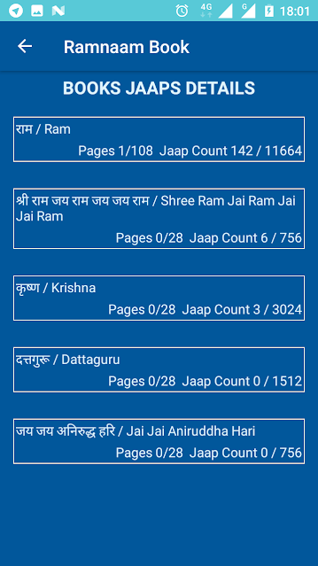 Aniruddha's Bank of Ram Nam is a project started by "Sadguru Shri Aniruddha Bapu". This is a book completely devoted to God. The book contains 220 pages which includes the following,